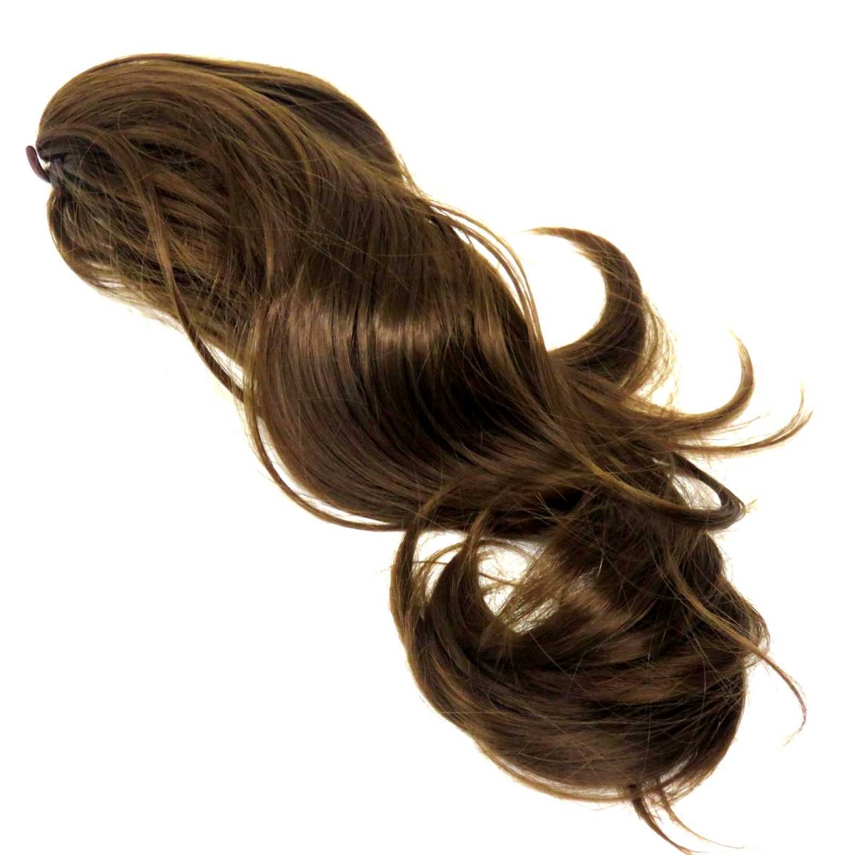 - ヘアウイッグ クリップ式 ポニーテール ブラウン 長さ33cm セミロング ポイントウイッグ ウェーブ カール アレンジ コスプレ 茶 エクステ