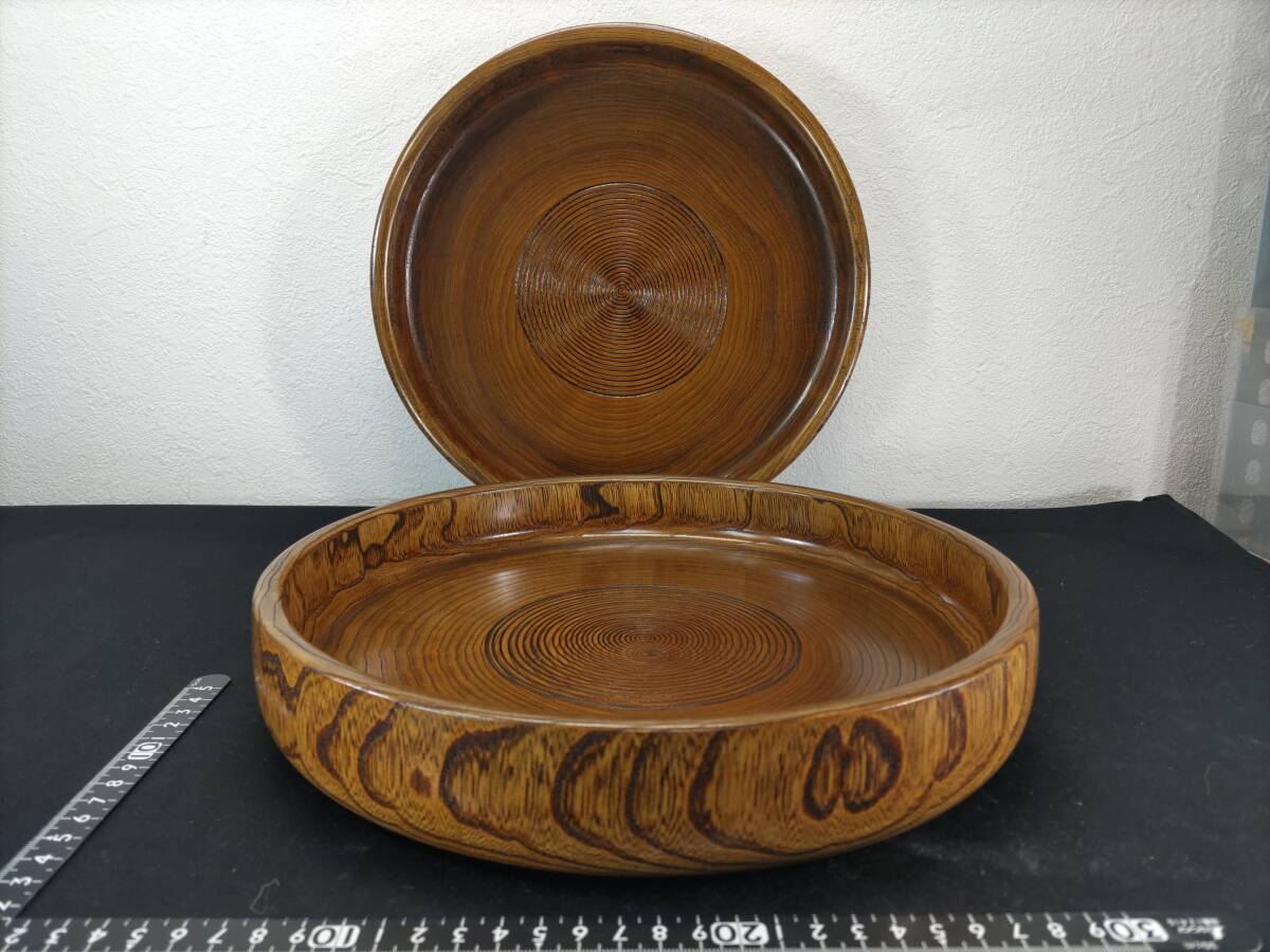 - ■送料無料!■まとめて■山中漆器・丸盆・H5×W29cm■菓子鉢■天然木■くり抜き■2点セット!