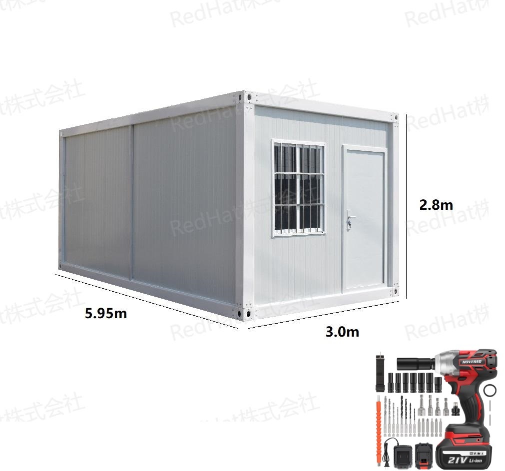 - 5.4坪 組立式ハウス ユニットハウス 工事用ハウス 仮設スーパーハウス 事務所 10.8畳物置 幅3m 奥行5.95m 高さ2.8m インパクトレンチ付き