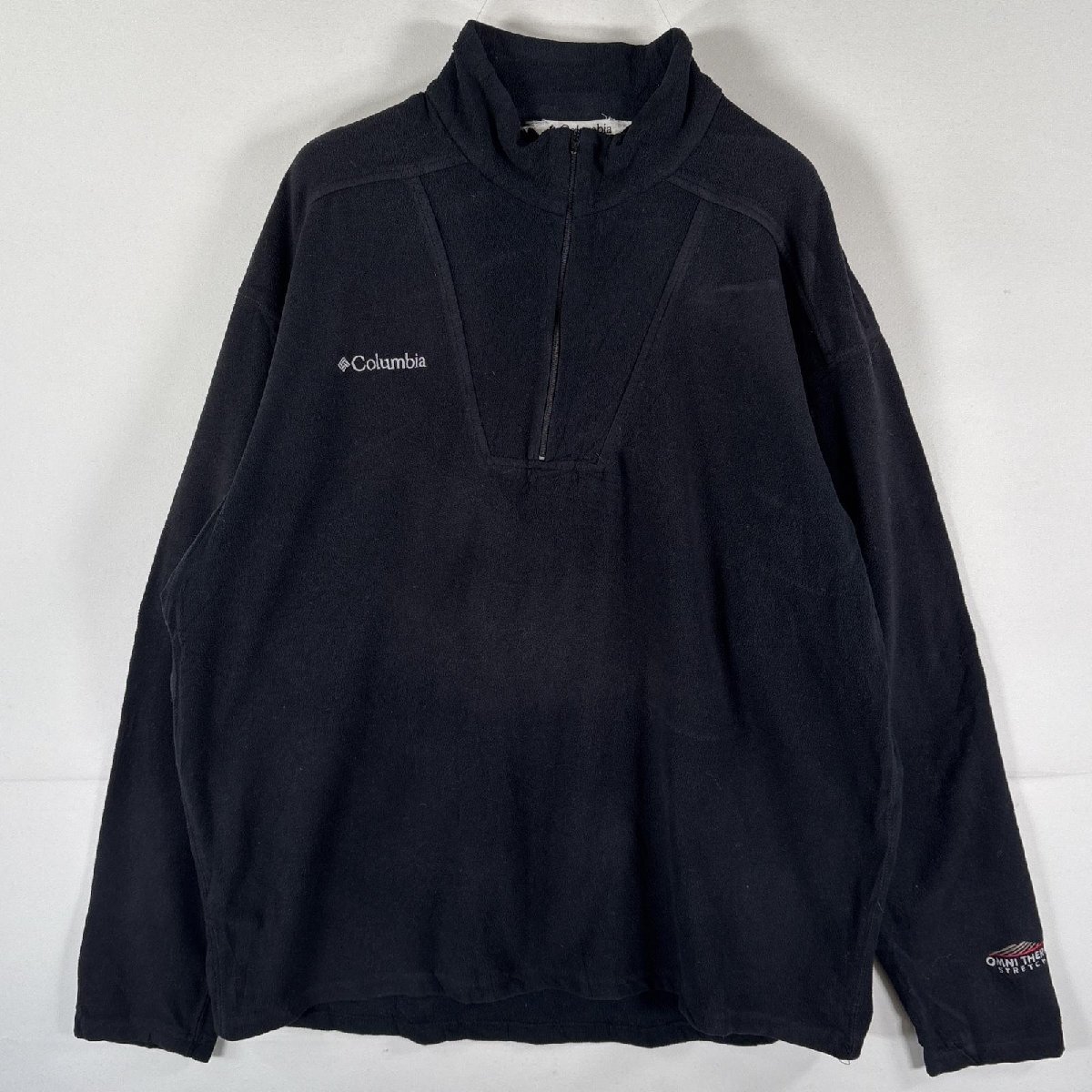 > 古着 90's/90年代 コロンビア Columbia ハーフジップフリースジャケット ワンポイントロゴ 袖刺繍 三角タグ アウトドア XL ブラック
