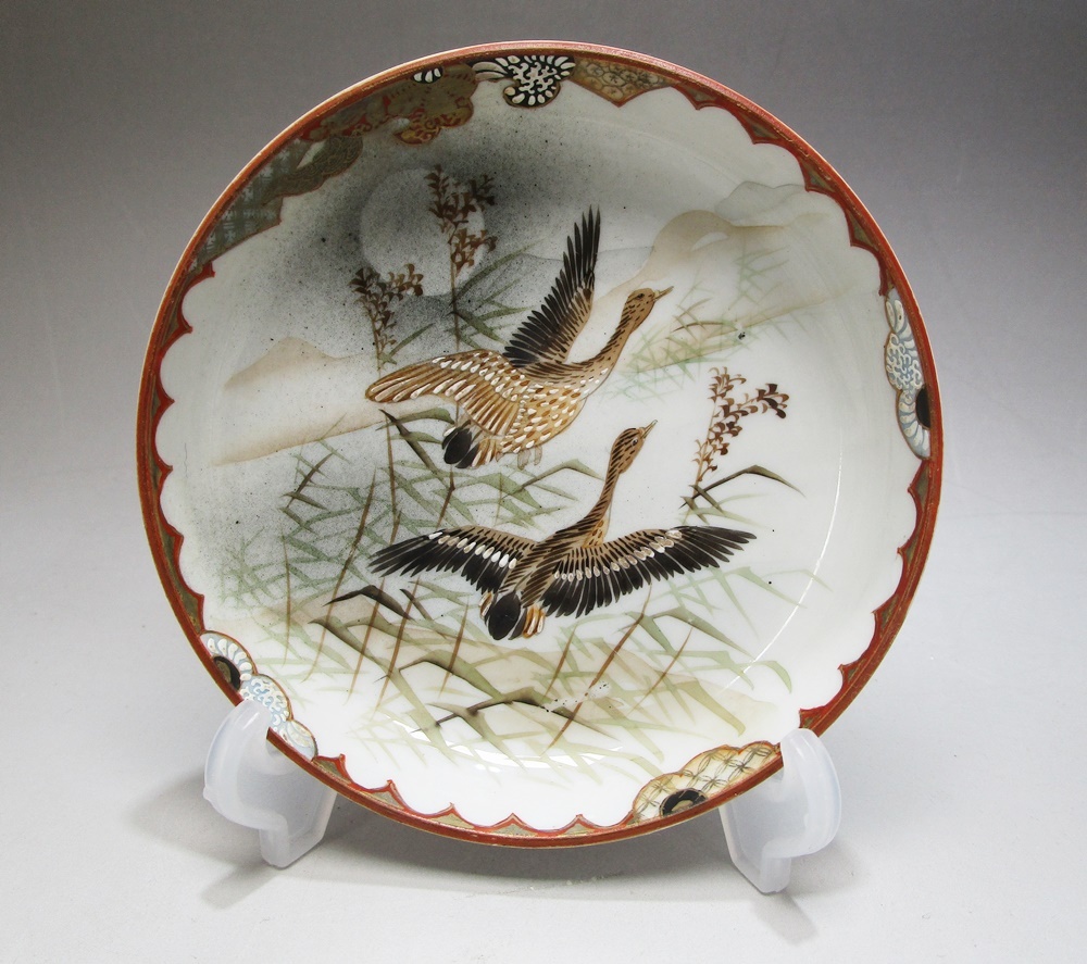 - 《ジャムルK》KKg0401-74◆九谷焼 土井製 月下飛雁図 小皿 豆皿 直径:12cm
