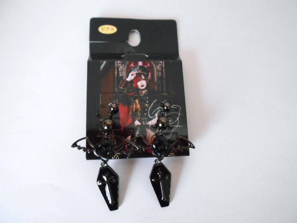 - ◆新品◆棺桶(十字架)・コウモリ・バラが付いたピアス 黒色 ☆ハロウィン・ロック?ヘビメタ系・パーティー