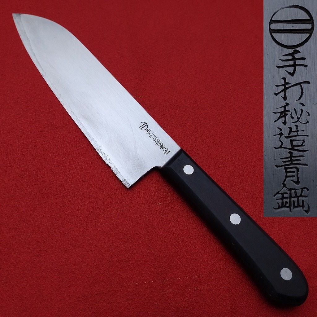 - 万能包丁 〇二 手打秘蔵青鋼 土牛作 刃長約172㎜ 峰厚約1.5㎜ 両刃 洋包丁 三徳包丁 調理器具 刃物 日本製 【3871T312】