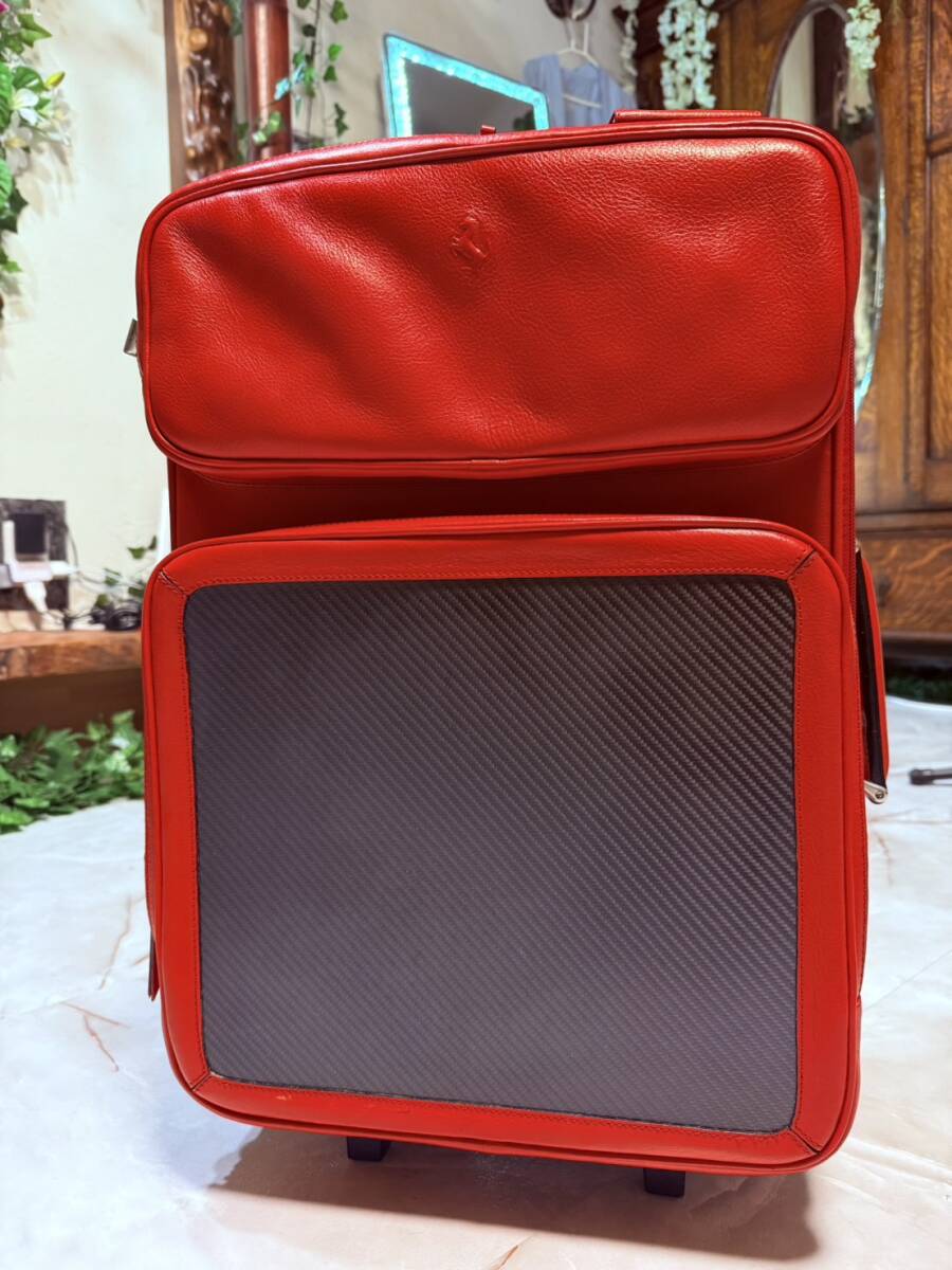 - 【スーパーカーのロマン品】定価20万以上!超希少オールレザー◆フェラーリ キャリーバッグ スーツケース トロリーケース バッグ 赤 限定品