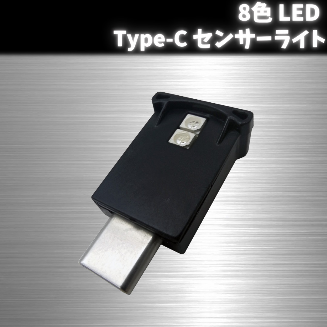 > USB Type-C LEDセンサーライト / 8色 イルミネーション 1個 / アルファード 40系 ヴォクシー プリウス カローラ 等 / フットランプ 室内灯