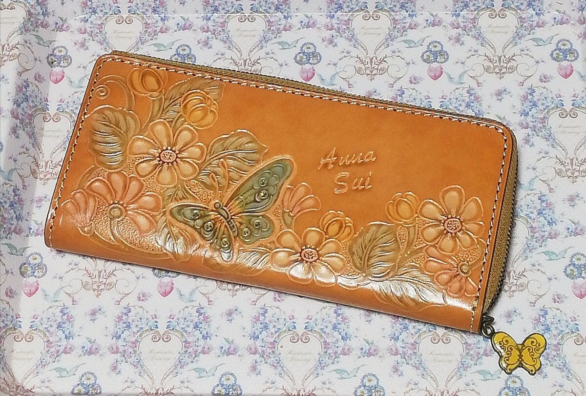 - 新品【長財布 ANNA SUIアナスイ】★店頭購入 正規品 (黄色イエロー芥子色マスタードキャラメル蝶々バタフライ花フラワー)