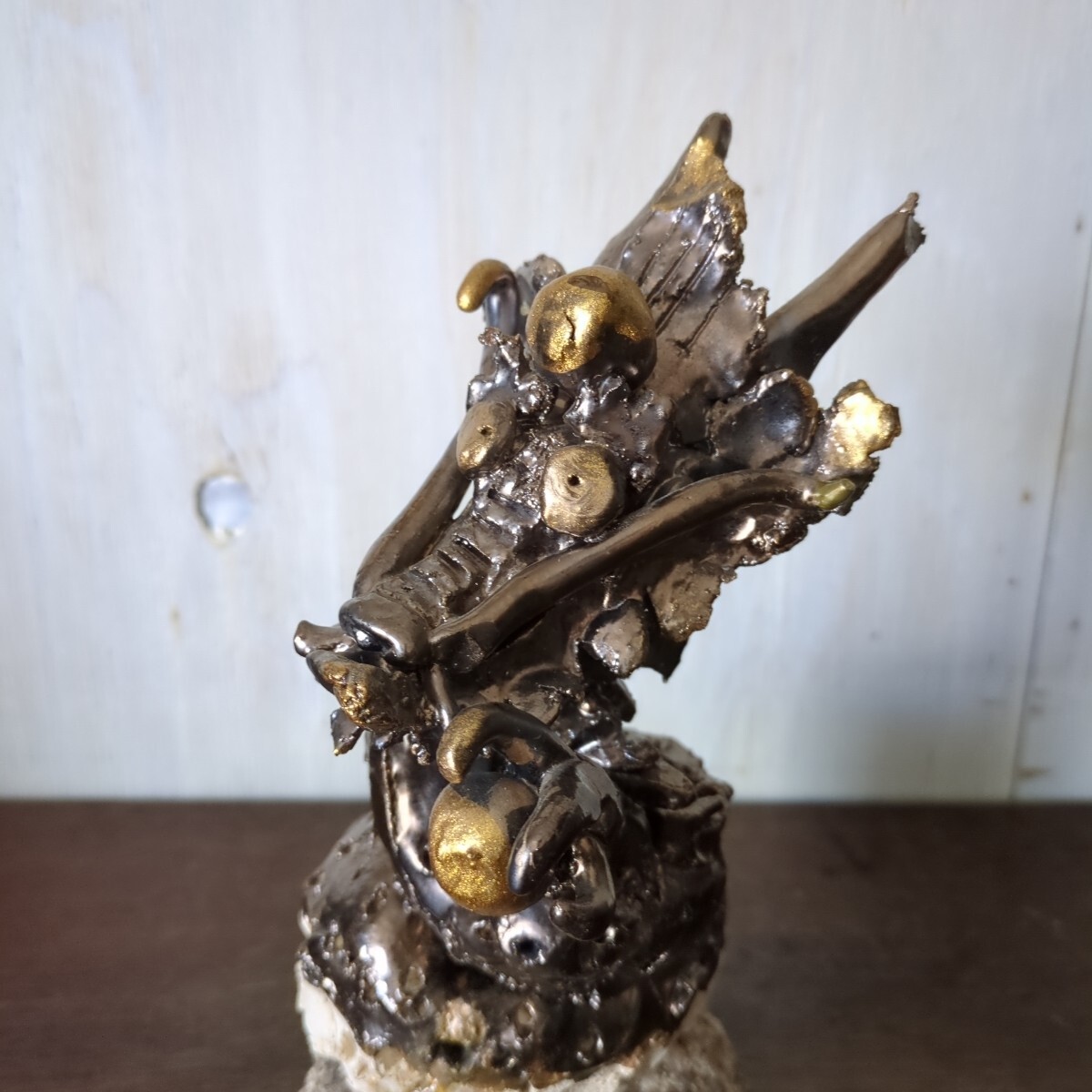 - 馬酔木窯 あびし 陶芸家 森正 龍 ドラゴン オブジェ 置物 箱無し 陶器 アート 万古焼 萬古焼