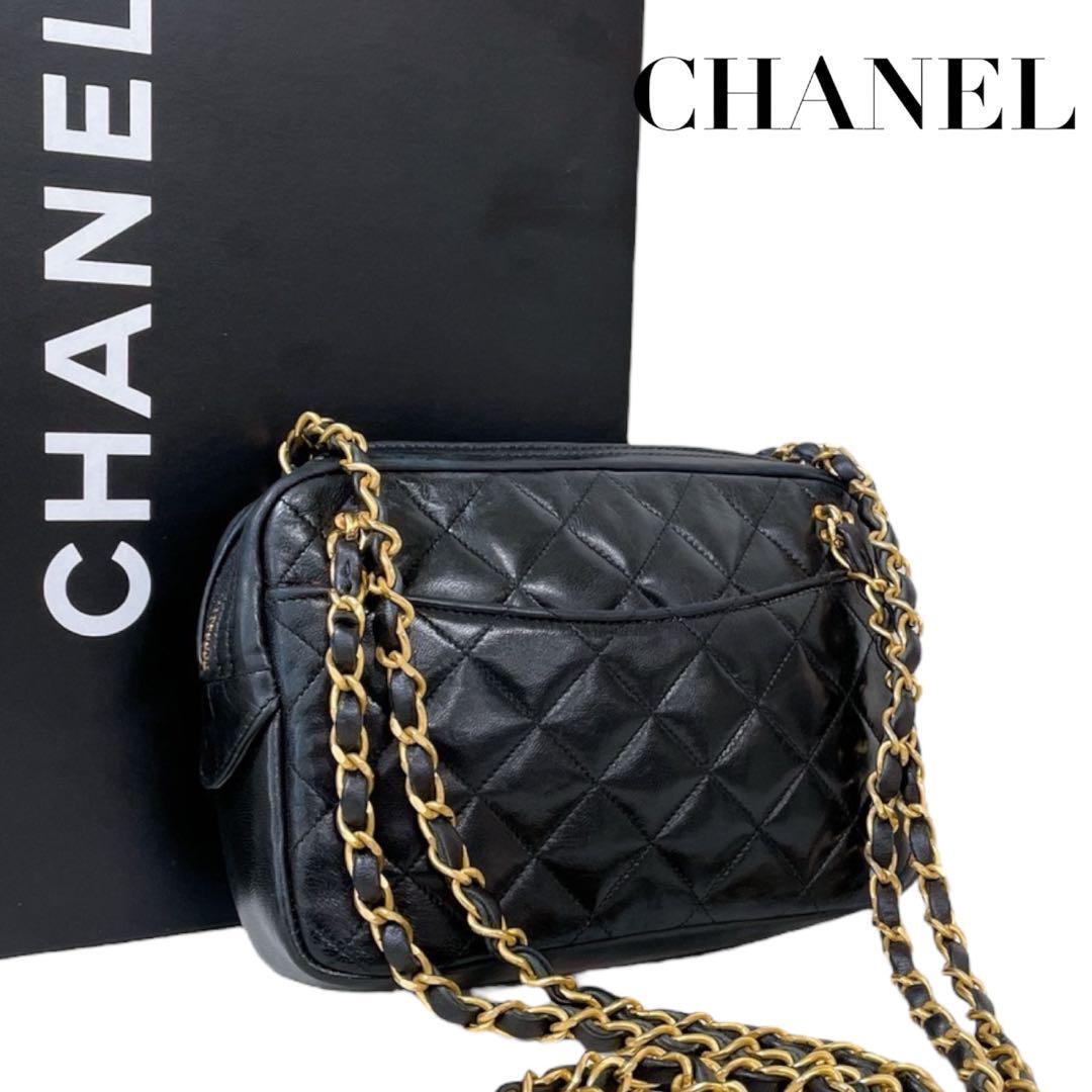 - シール有 シャネル マトラッセ Wチェーン トートバッグ ラムスキン 黒 4273