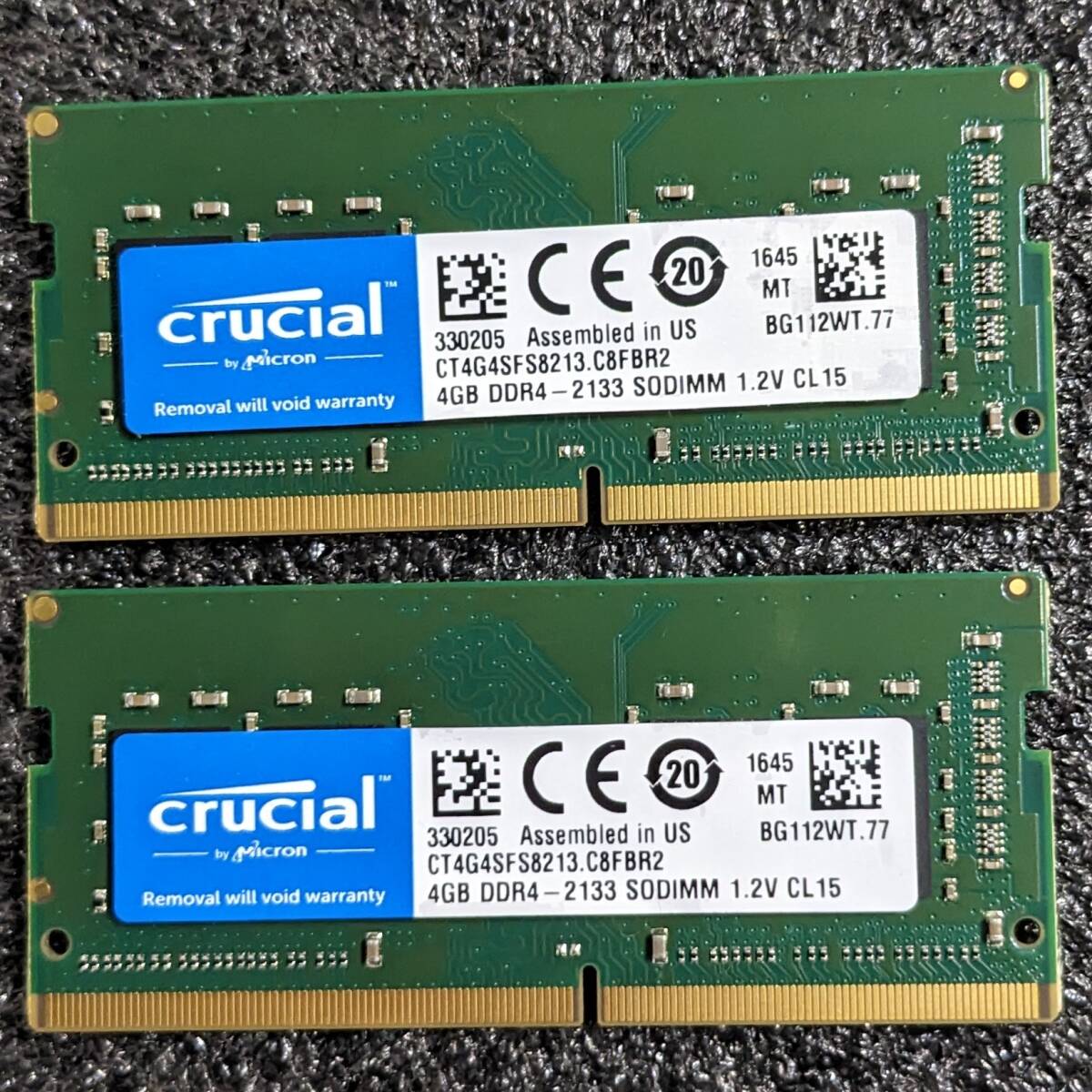 - 【中古】DDR4 SODIMM 8GB(4GB2枚組) Crucial CT4G4SFS8213.C8FBR2 [ DDR4-2133 PC4-17000]