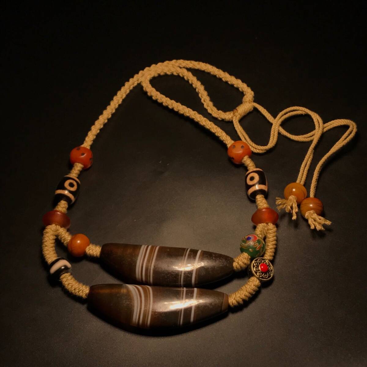 - 【仁】『瑪瑙製・細密彫・牛角天珠ネックレス・根付・裝身具』極細工 古賞物 中国古玩 古美術 古美味