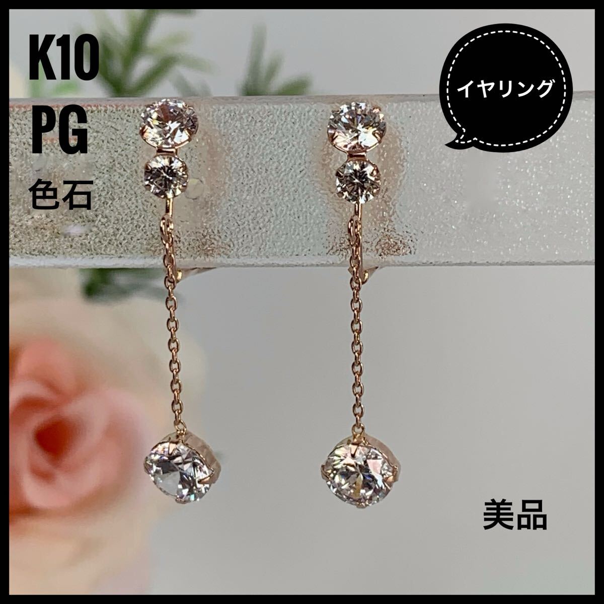 - K10 PG 色石 イヤリング キラキラ 揺れる レディース シリコンカバー付き