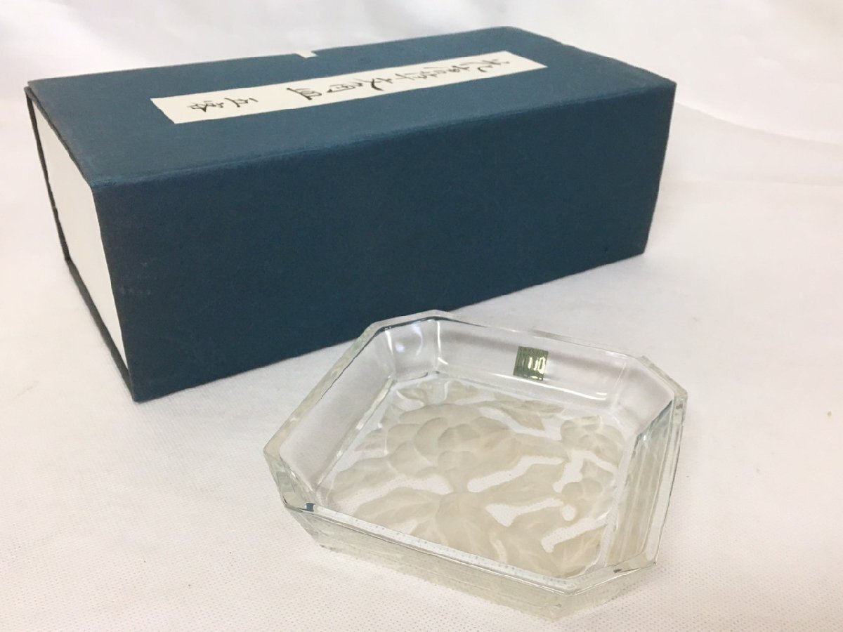 > 【D-2159】未使用 HOYA CRYSTAL 保谷クリスタル 花唐草文角皿 5枚セット クリスタルガラス 食器 I2108【千円市場】