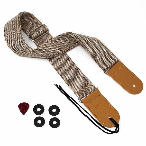 > 「b1w-a2」 ギターストラップ コットンリネン +ストラップロック 4枚 + ピック 3種6点 セット (グレー)