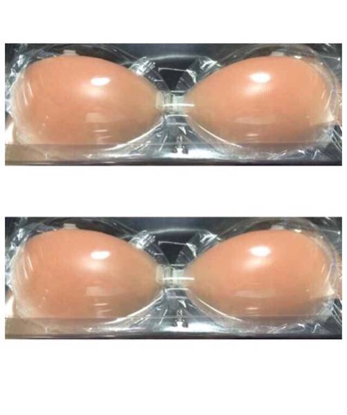 > ストラップ 付き ヌーブラ 二個セット Nubra D カップ ブラ シリコン ピンク 水着用 普段使い ブラジャー 下着 アンダーウェア