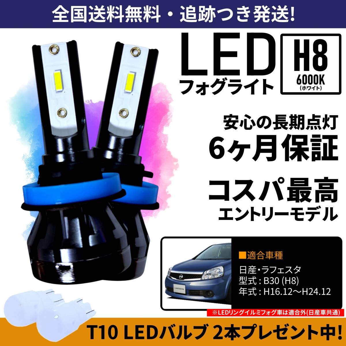- 【送料無料】日産 ラフェスタ B30 LED フォグライト フォグランプ H8 ホワイト 6000K 保証付き
