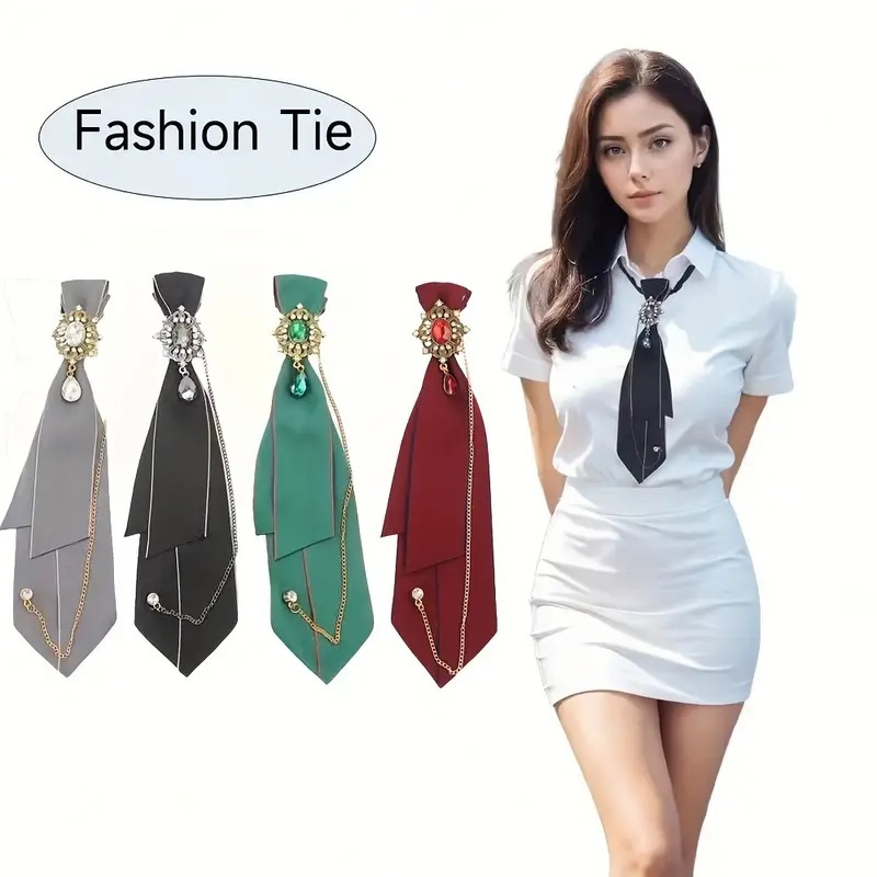- 装飾的なブローチとチェーンのディテール男女兼用キレイ目カジュアルスタイルフォーマルイベントウェアに最適な万能アクセサリーネクタイ