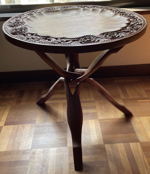 - kz1k53-071 アフリカ民芸 木彫り 折り畳みテーブル ガーナ 現状品
