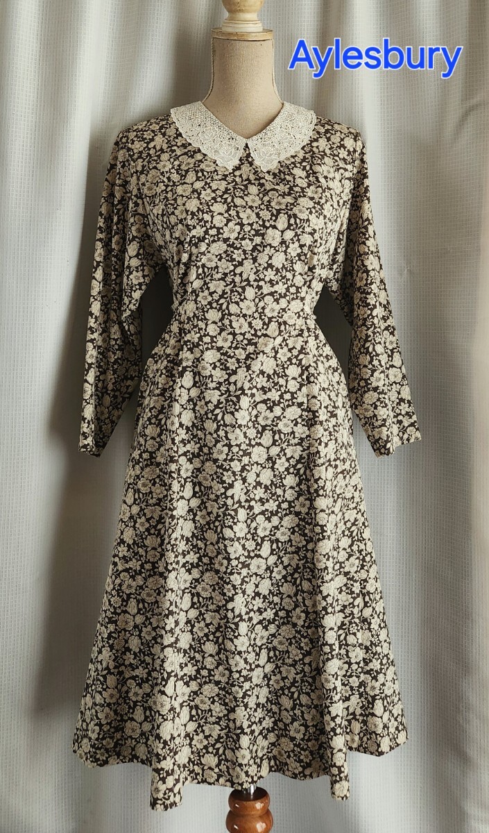 - 大変美品 アリスバーリー 白レース襟のワンピース 清楚 可憐 レトロ 花柄