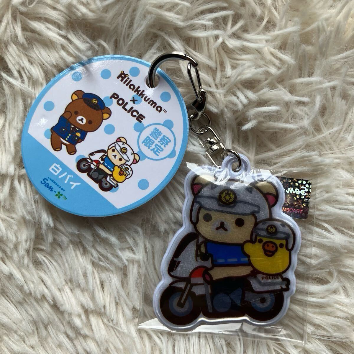> 警察限定 リラックマ コリラックマ ポリス リフレクター 白バイ スタイル キーホルダー ダイカット レア POLICE San-X Japan only