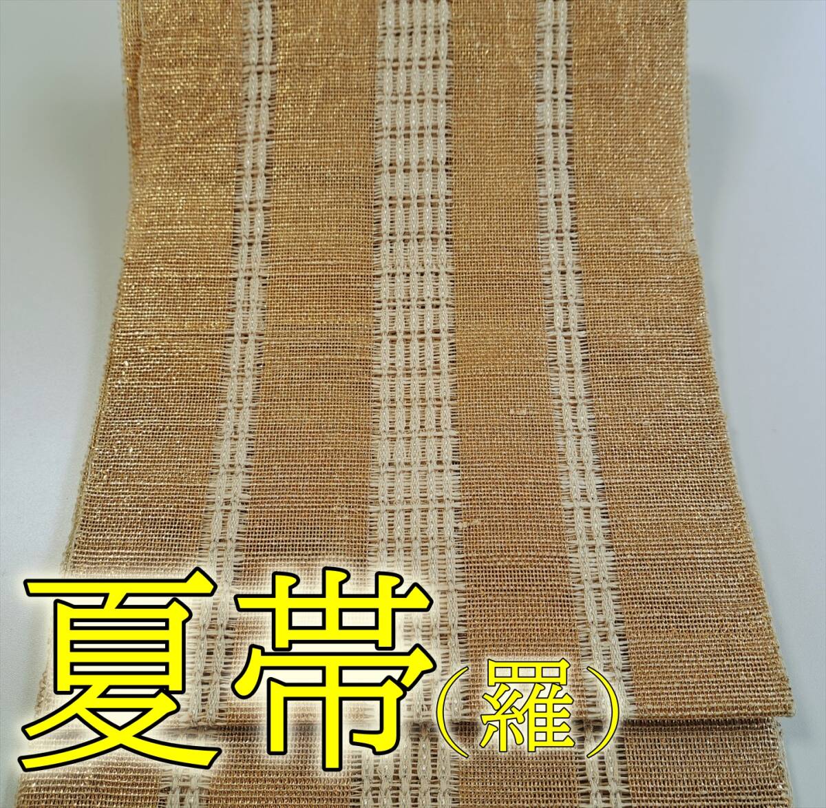 - 即決■着物の越田■幅30.5長さ360 正絹 名古屋帯 夏帯 羅 ★美品★ 開き仕立て 三越 シンプル 縞 頭Z◇ふ07J06a