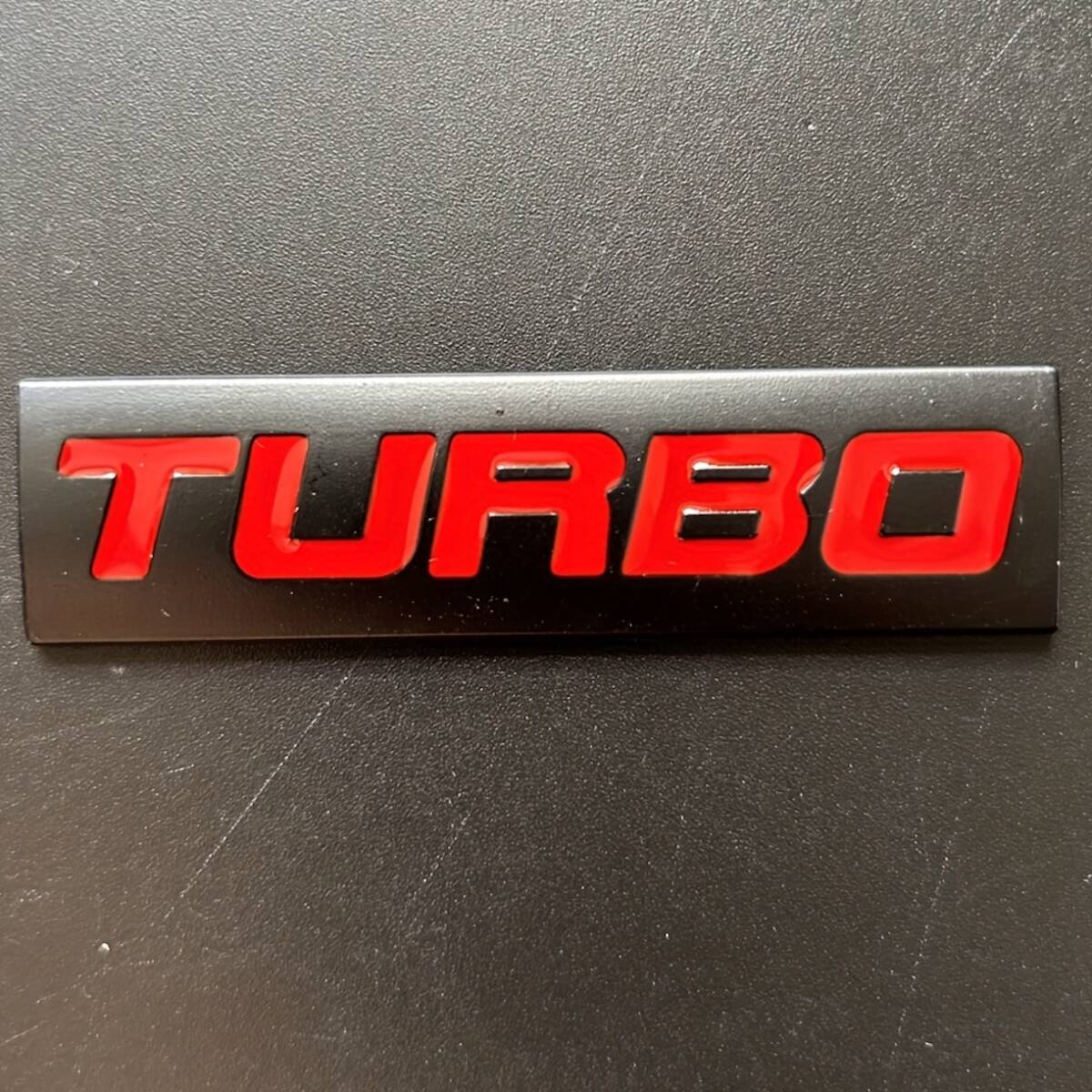 - メタルステッカー TURBO ターボ 金属 立体 7.6cm レッド 赤 ブラック おしゃれ エンブレム 貼り付け バイク オートバイ 外装 シール t5859
