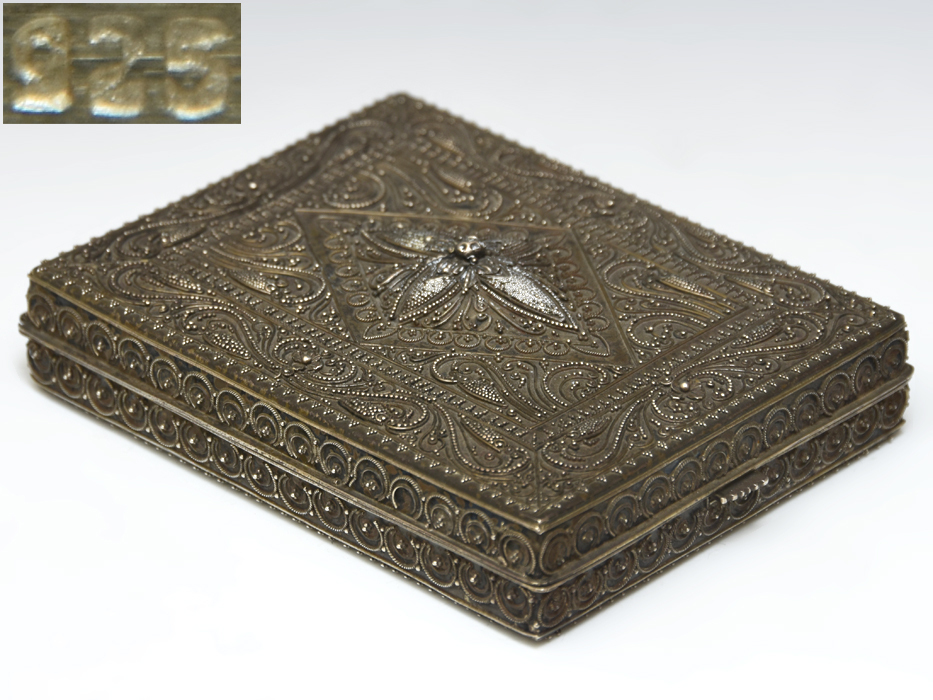 - インド 銀製 シルバー925 銀線細工 フィリグリー シガレットケース 煙草入 煙草道具 蓋物 61g 金属工芸 SILVER 銀 u0026a