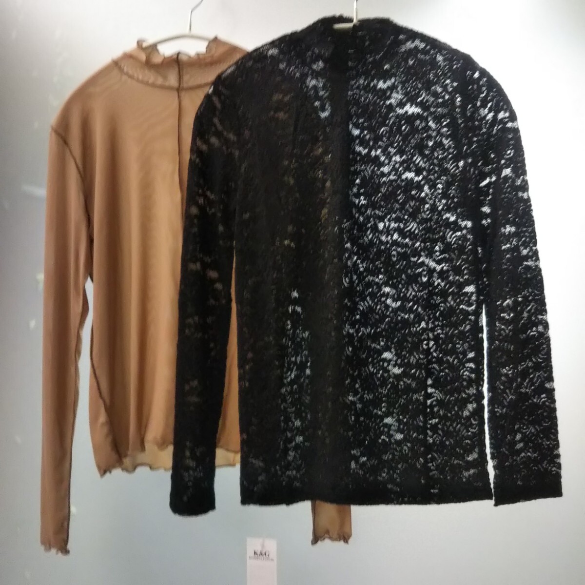 - 匿/ゆうパケット送込【黒L・ブラウンM 2枚set 】総レース シアー ボトルネック インナー ファスナー