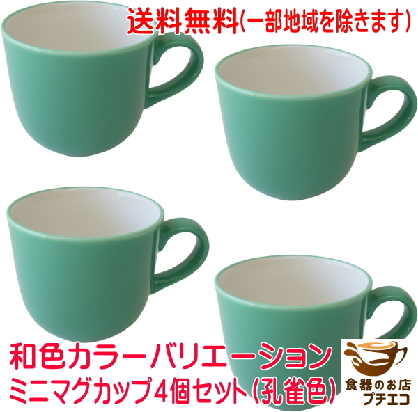 > 送料無料 和色 カラーバリエーション ミニ マグカップ 4個セット 孔雀緑 満水 200ml 小さめ レンジ可 食洗機対応 美濃焼 日本製 グリーン