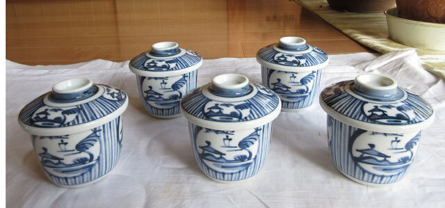 - ☆陶器:未使用:レトロ☆オーソドックスな柄の茶わん蒸し5個セット