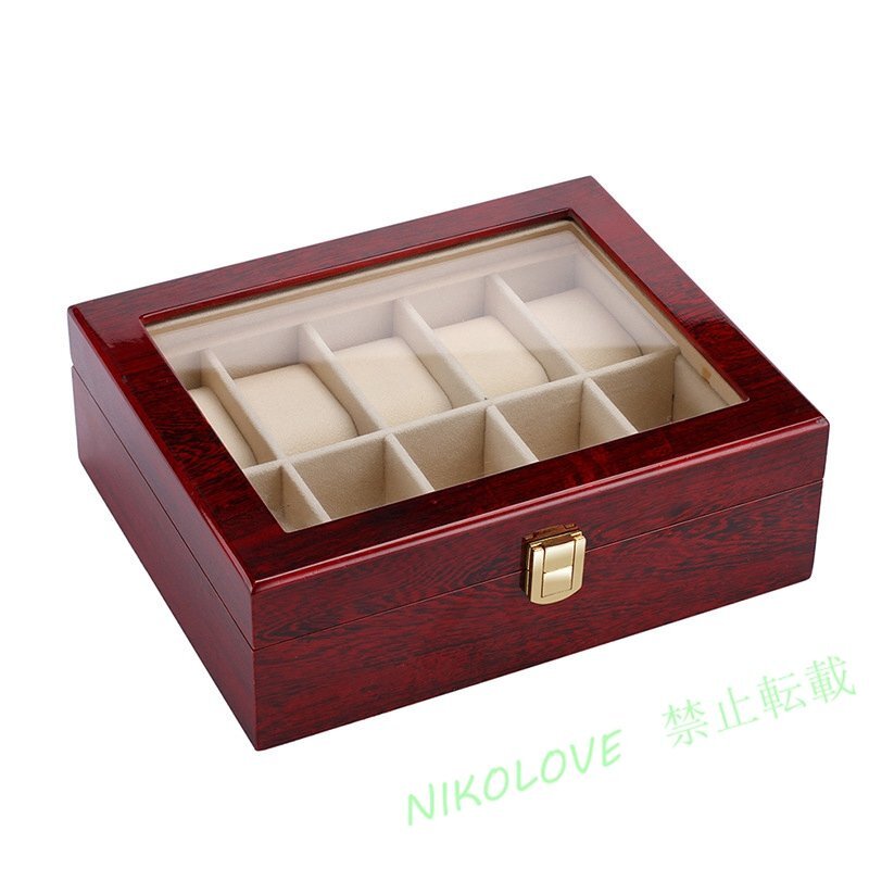- 新品 時計収納ケース コレクションケース 木製 10本用BOX腕時計ケース高級ウォッチボックス コレクション インテリア 保管 展示 レッド