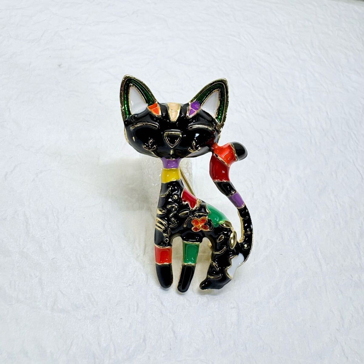 - 【ブローチ】黒猫 笑顔 にっこり 昭和レトロ カラフル 00-3
