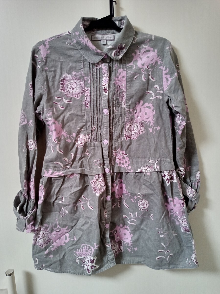 - 長シャツワンピース/薄コート 10a135〜145cm 綿100% グレー花柄