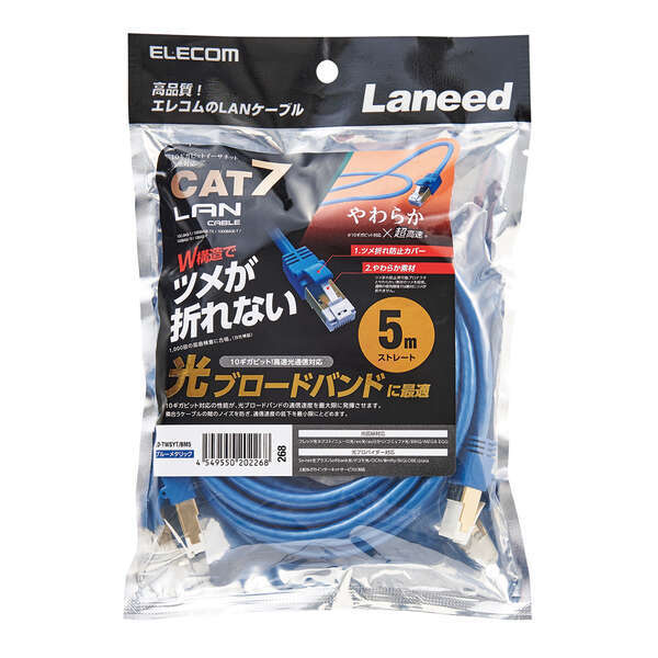 - Cat7準拠LANケーブル やわらか/ツメ折れ防止タイプ 5.0m 取り回しやすく、ツメが折れにくいコネクターを採用: LD-TWSYT/BM5