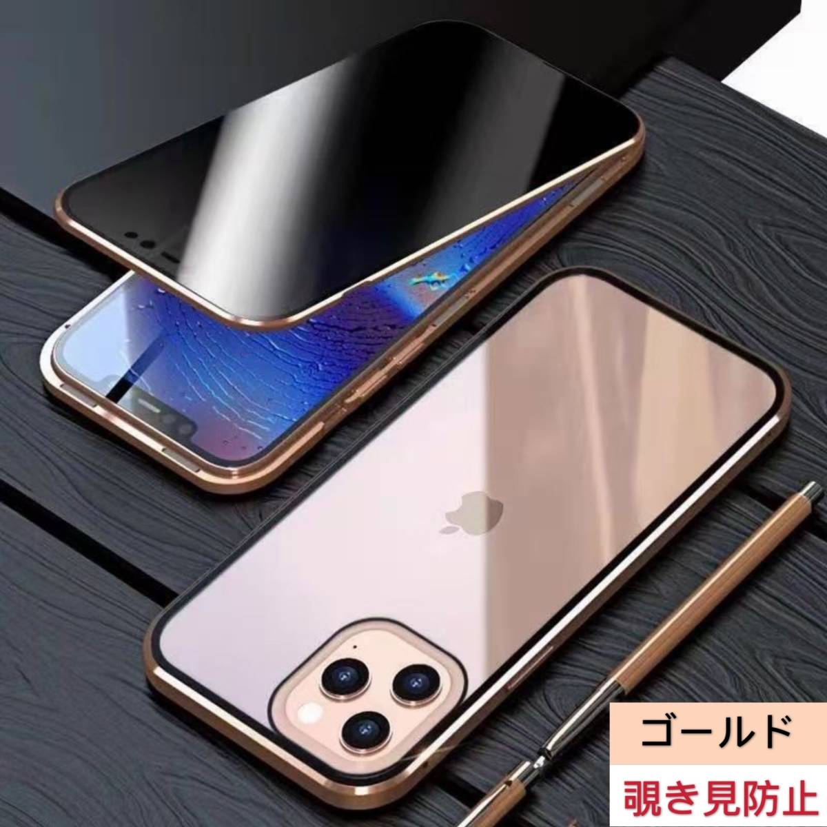 - iPhone 12/12Pro ゴールド 覗き見防止 両面強化ガラス 全面保護 アルミ 磁気吸着 耐衝撃Phone SE 2 3 X S 11 13 14 15 Pro max Plus ケース