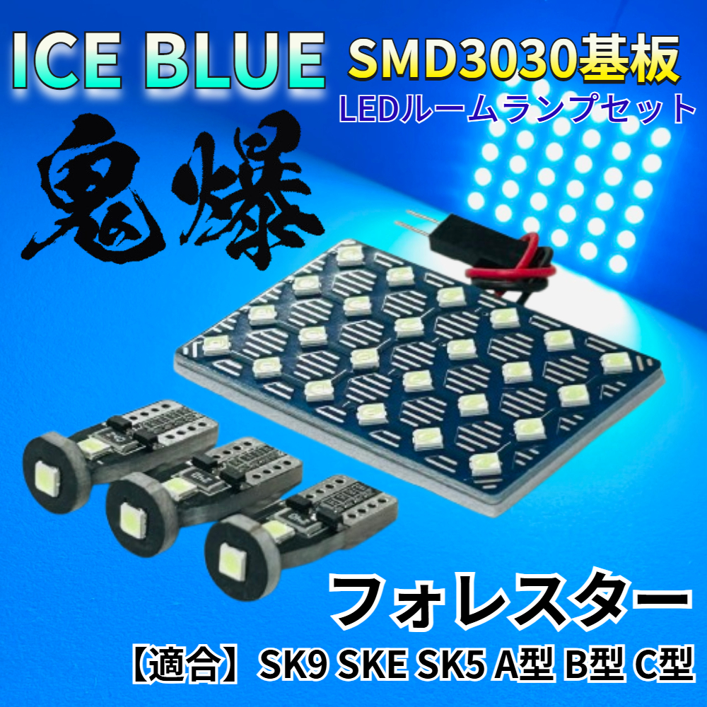 > 【アイスブルー】SK9 SKE SK5 フォレスター A型 B型 C型 鬼爆基板 3030SMD LED ルームランプ セット 車内灯 室内灯 パーツ アクセサリ