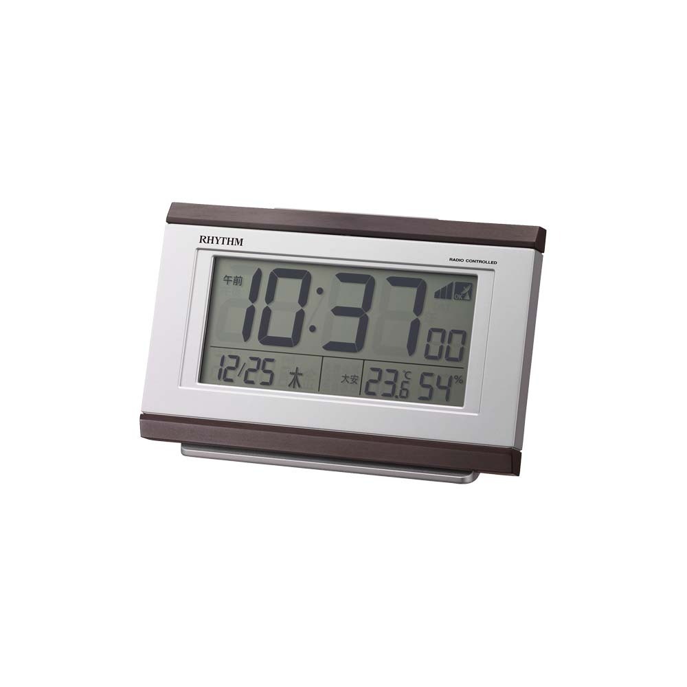 - リズム RHYTHM フィットウェーブD161 電波 目覚まし時計 8RZ161SR06 カレンダー 日付 温度計 湿度計 デジタル