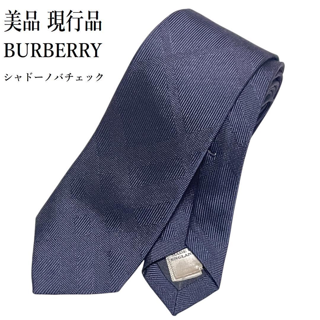 - 【現行◆美品】BURBERRY バーバリー ネクタイ ネイビー 紺 シャドーノバチェック / ソリッドタイ ジャケット スーツ ドレス ビジネス