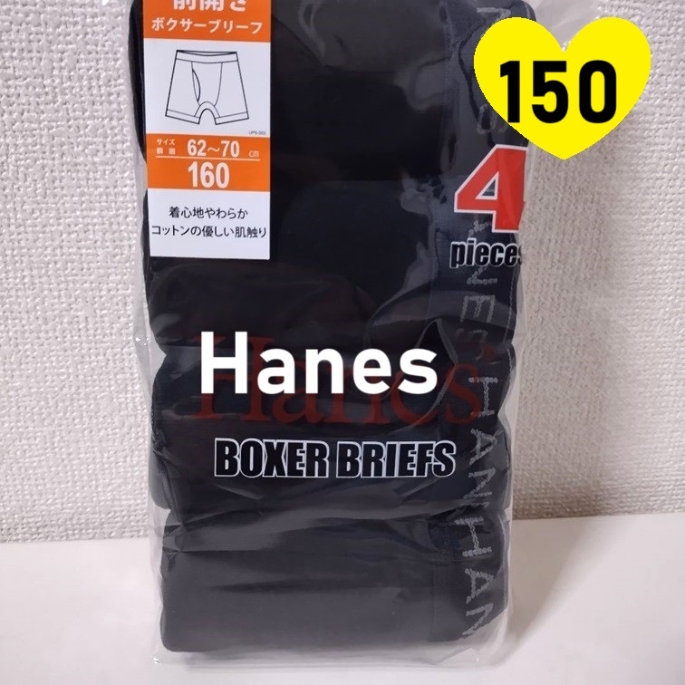 > 150 ボクサーブリーフ 4枚 ヘインズ メンズ ブラック 黒 インナー パンツ 前開き アンダーウェア Hanes 中学生 高校