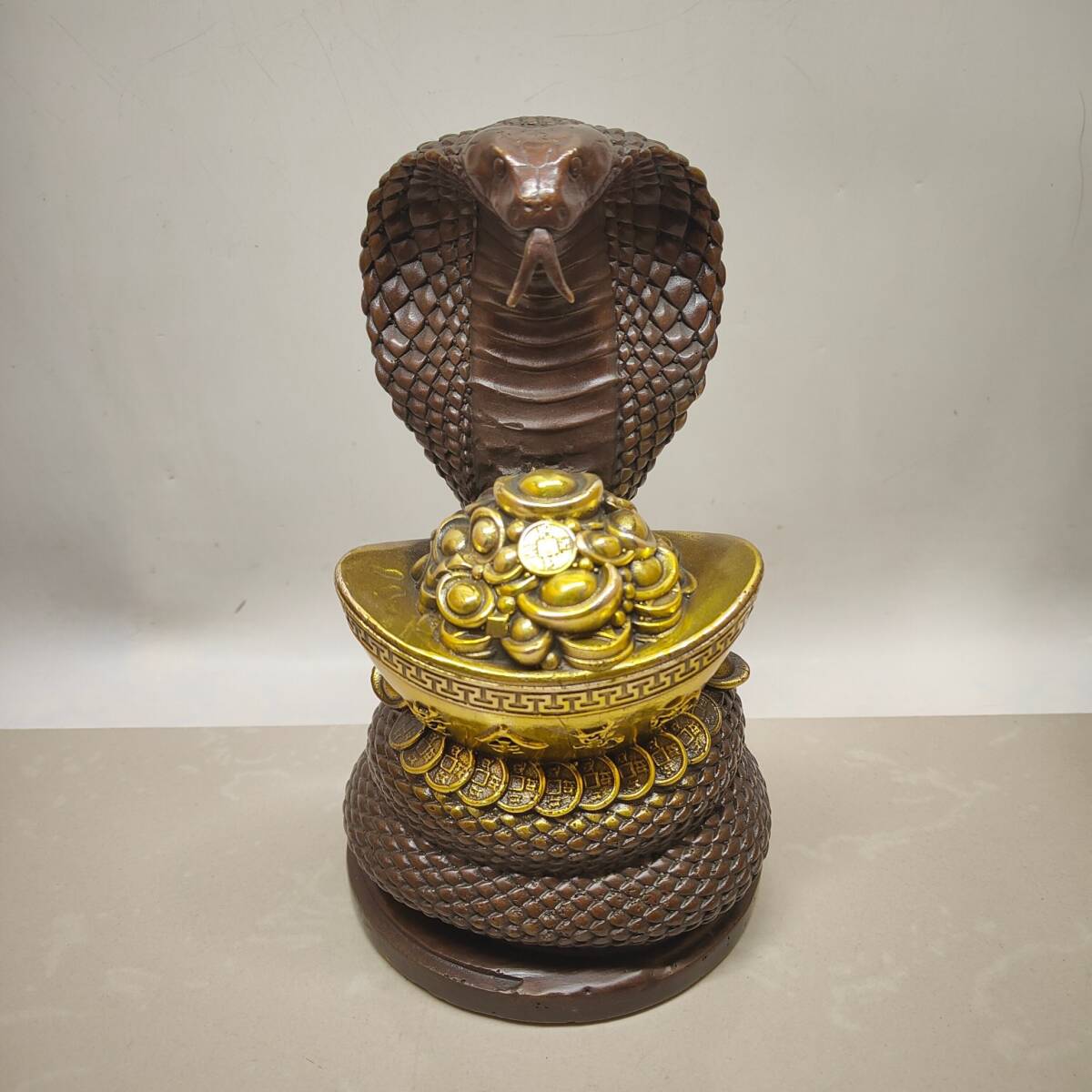 - ▽鴻▽ 黄銅製 塗金 元寶蛇 置物 古賞物 中国古玩 中国古美術