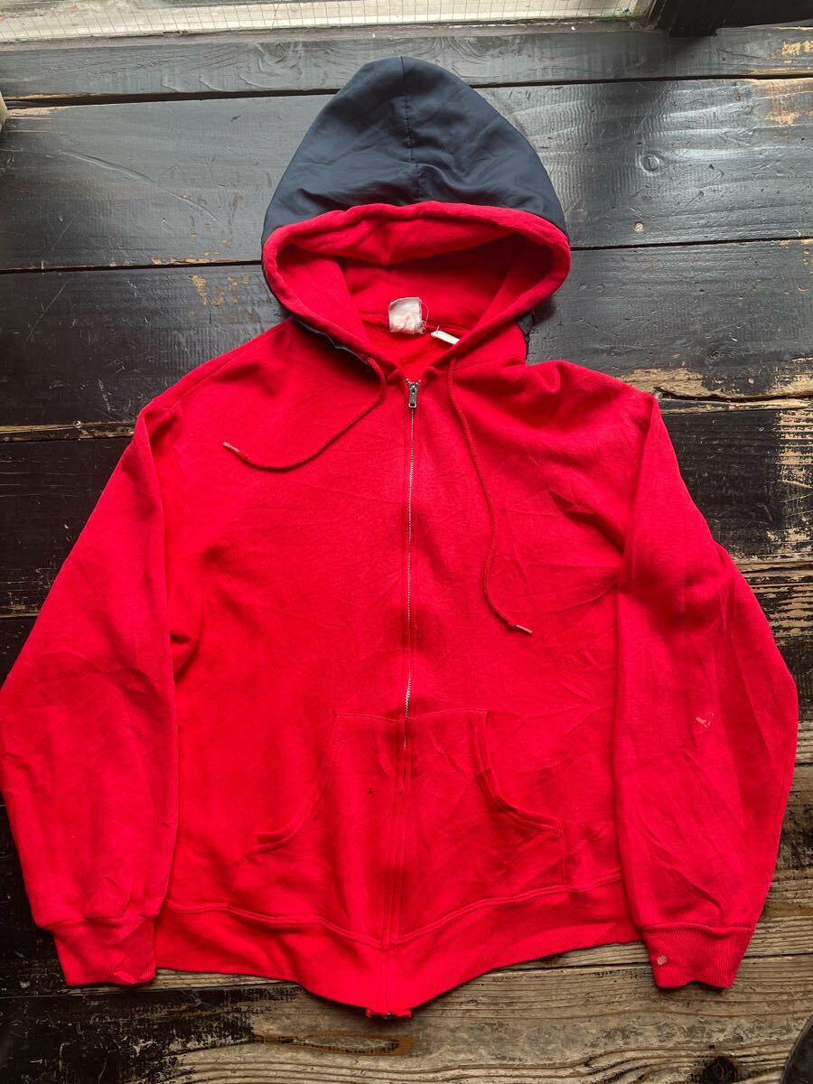 - 1980s 80s 80年代 USA製 ジップパーカー ボロ ビンテージ 古着 アメカジ グランジ 赤 ダメージ リメイク デザイン