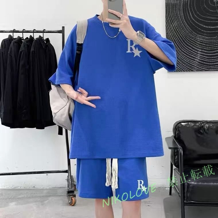 - 新品 上下セット メンズ セットアップ トップス+短パン 2点セット 大きいサイズ 半袖 夏 ゆったり カジュアル 3色M-5XL