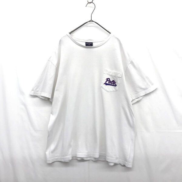 > JZ0399★POLO SPORT : 90's スクリプトロゴ ポケットTシャツ★M★ホワイト 半袖 Ralph Lauren