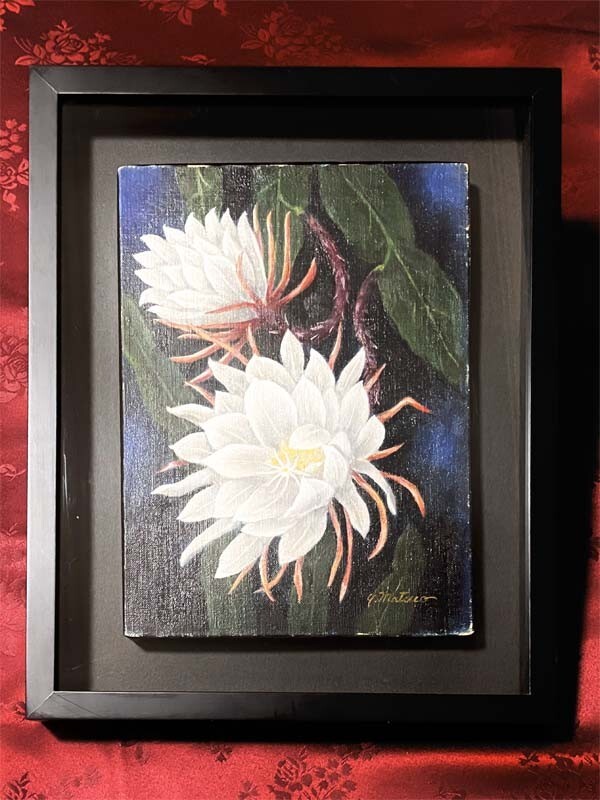 - 松尾嘉雄●真作●まつお よしお●キャンバスに油彩 一点物 直筆サインあり■静物画 花 月下美人 ■キャンバスの角に擦れがございます