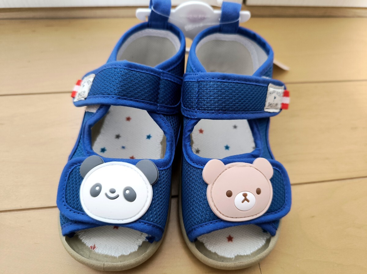 > ☆未使用!サンダル 15cm☆ベビー ベビーシューズ☆ 男の子 キッズ☆青色 クマ パンダ☆送料450円