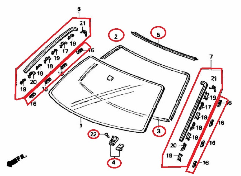 > ☆豪華7点フルセット☆ホンダ シビック EG6 フロントガラスモールディング 新品 未使用 純正 HONDA CIVIC EG3 EG4 EG5 ガラスモール