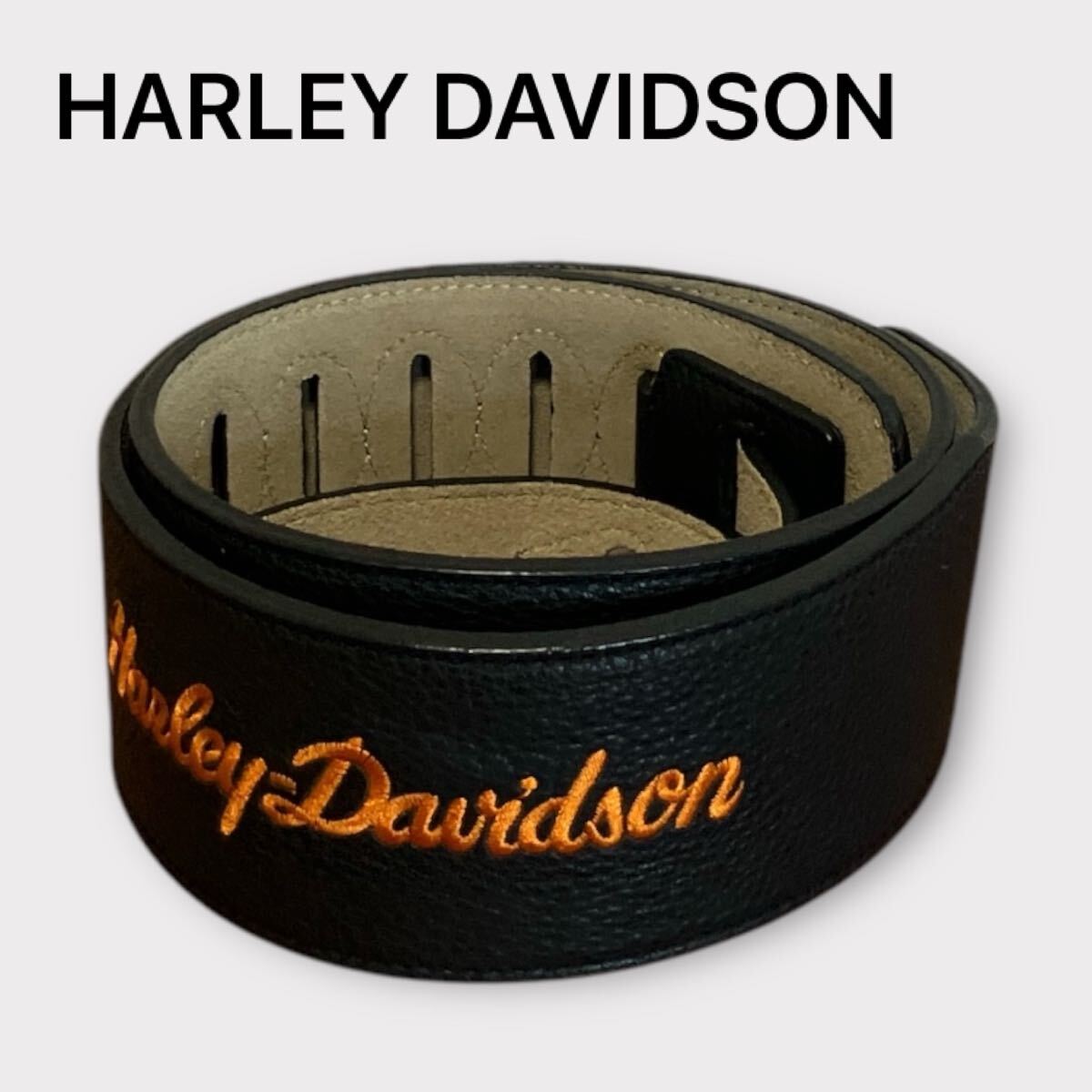 > HARLEY DAVIDSON ハーレー ダビッドソン ギターストラップ レザー ロゴ刺繍 シュリンク加工 ビンテージ デッドストック 未使用品 ブラック