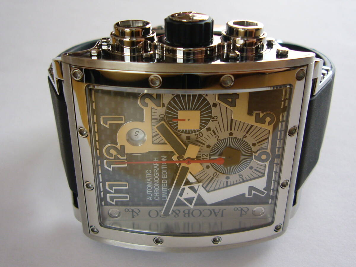 > 新品同様!正規品 ジェイコブ JACOB & CO. エピック1 JC-V2Q1 自動巻クロノグラフ シースルーバック