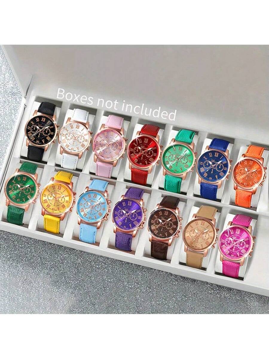 - 腕時計 レディース セット 14個入り ファッション レディース ミニマリスト 3ダイヤル ローマン スケール クオーツ腕時計セッ