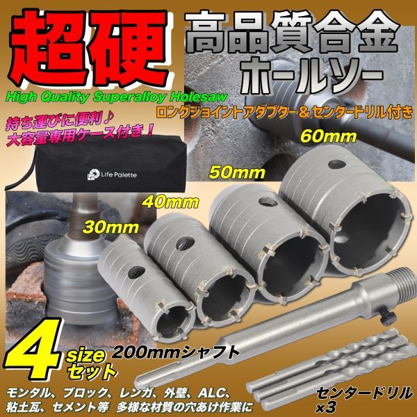 - 超硬チップ付き 耐摩耗 耐久性抜群 ホルソー セット ホールソー コアドリル コンクリート ドリルビット 30mm 40mm 50mm 60mm 工具入れ