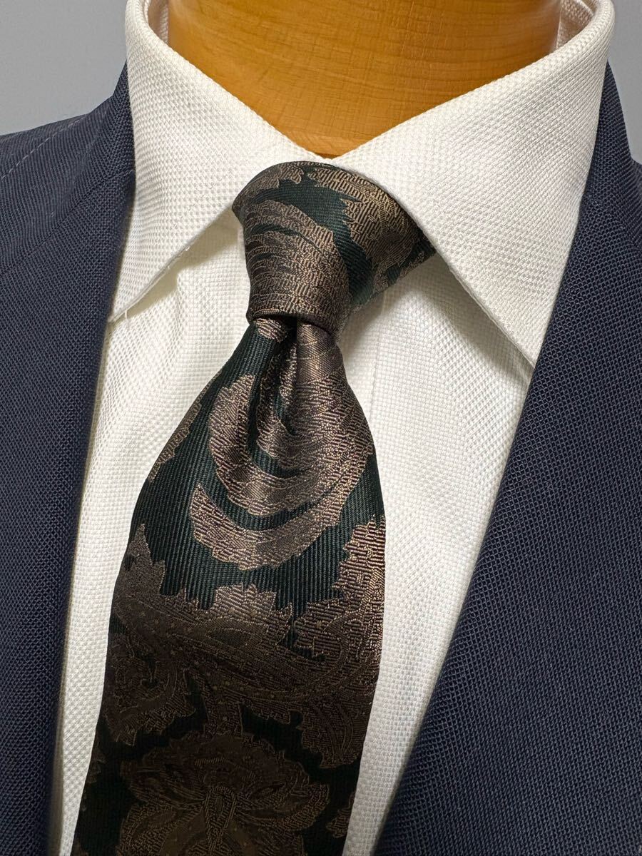 - 【美品】バーバリーヴィンテージ ペイズリー柄ネクタイ 大剣約8.5cm グリーン×ブラウン 2504